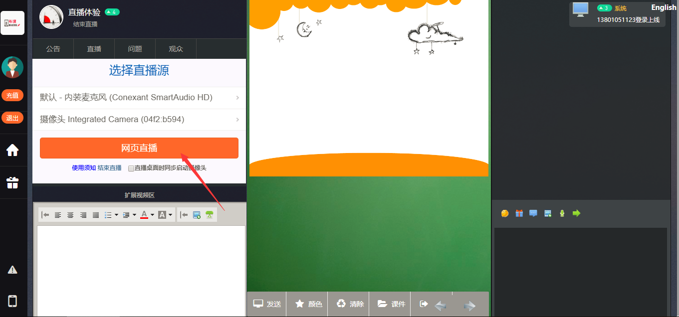 可以直播桌面,攝像頭,同時(shí)可以打開(kāi)文件進(jìn)行講解,所有點(diǎn)畫(huà)操作會(huì)同步直播給用戶....